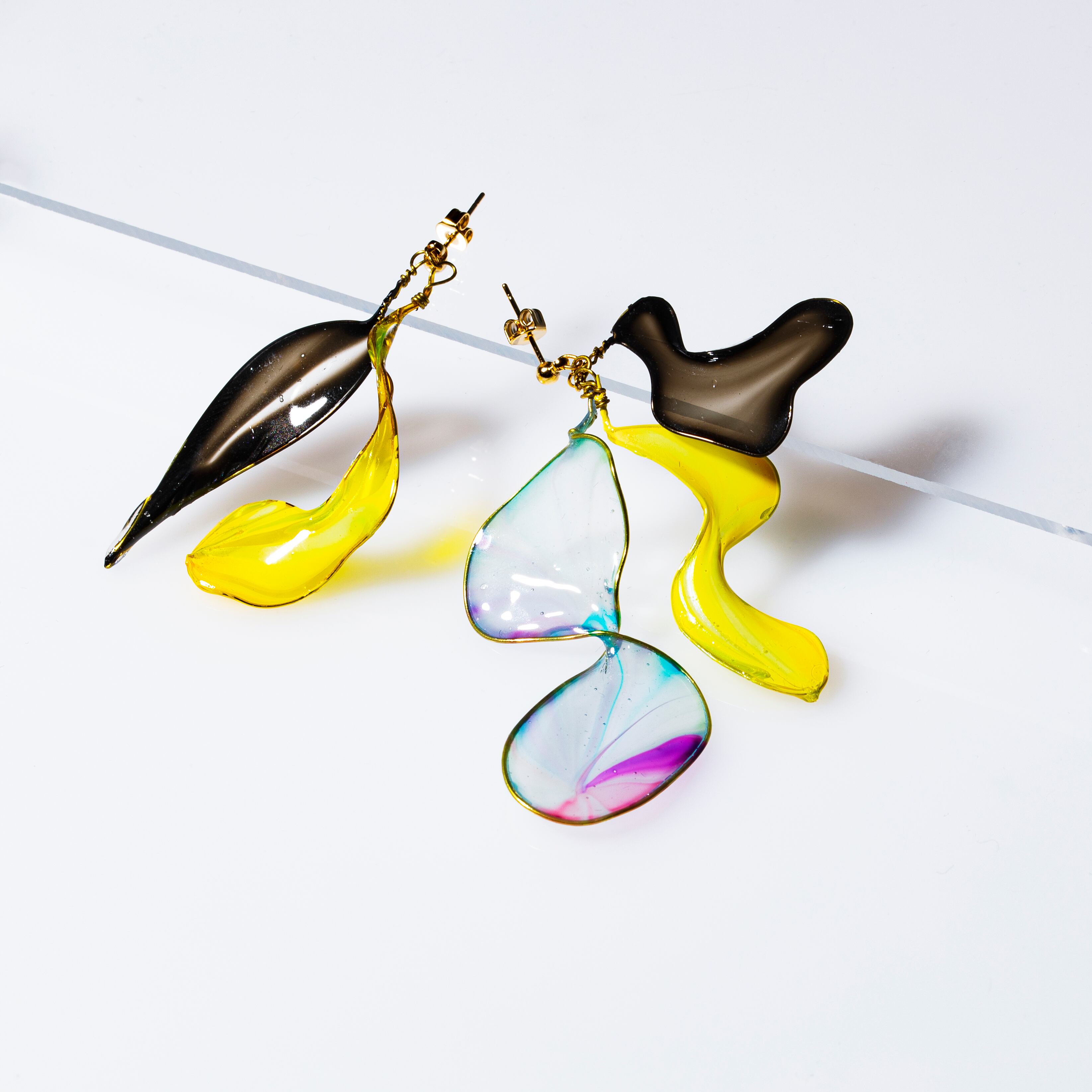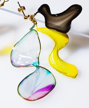 注意:耐水性ですが、繊細な作品になります。また素材の性質上、保管状態によってはピース同士がお互いにくっ付いたり、透明度が落ちたりいたします。またお好きなタイプの金具に変更も可能です。