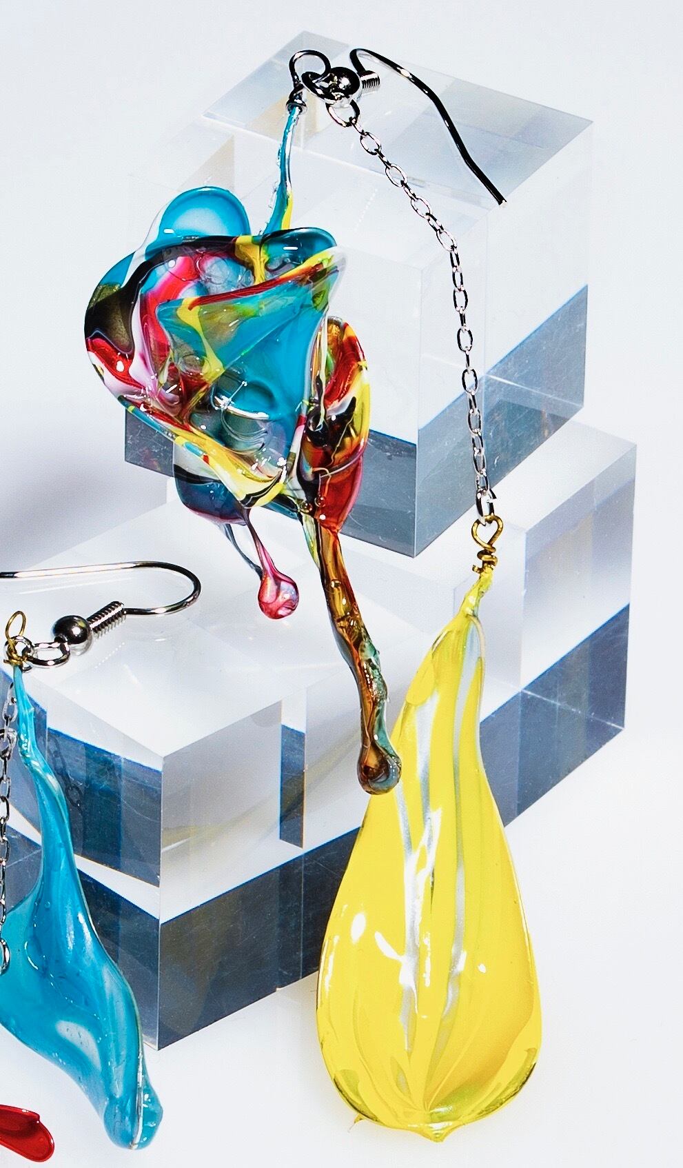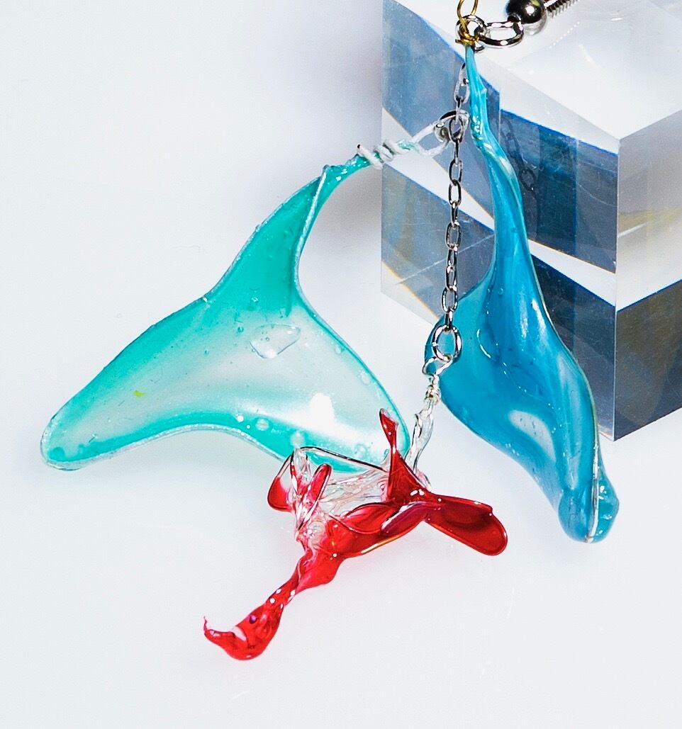 注意:耐水性ですが、繊細な作品になります。また素材の性質上、保管状態によってはピース同士がお互いにくっ付いたり、透明度が落ちたりいたします。またお好きなタイプの金具に変更も可能です。