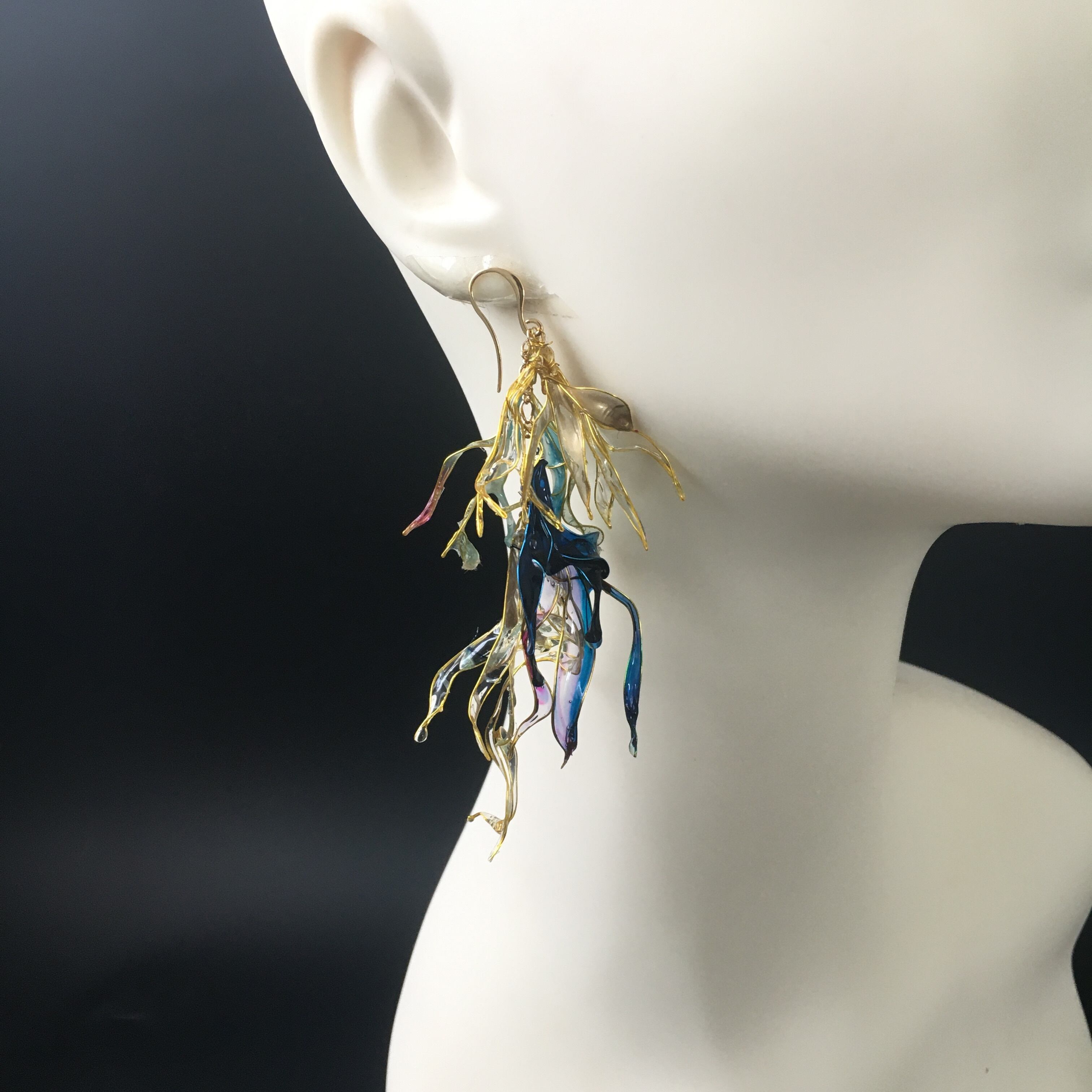 注意:耐水性ですが、繊細な作品になります。また素材の性質上、保管状態によってはピース同士がお互いにくっ付いたり、透明度が落ちたりいたします。