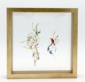 鮮やかで透明な樹脂とワイヤーを組み合わせた独自のアート作品。