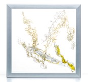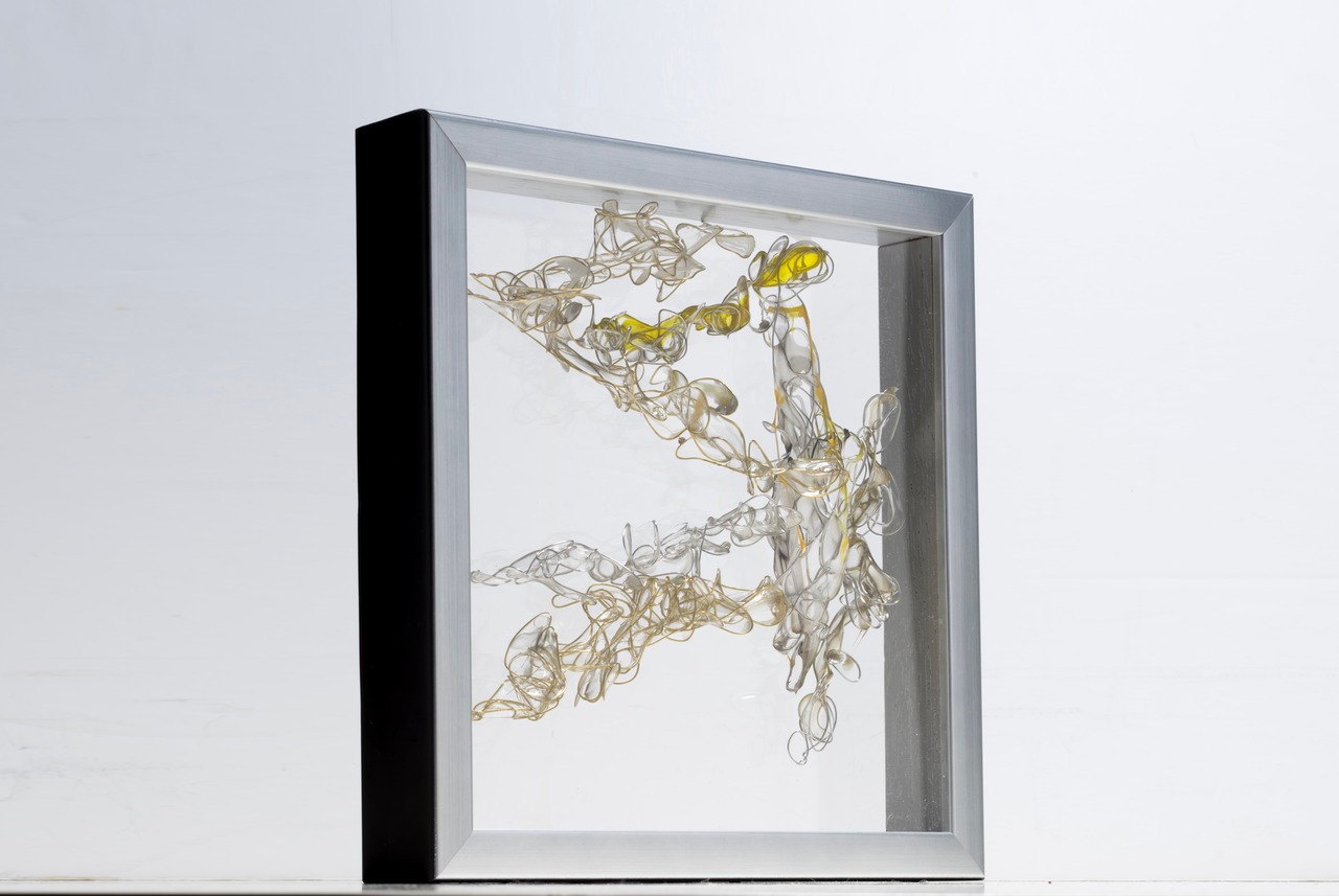 鮮やかで透明な樹脂とワイヤーを組み合わせた独自のアート作品。
