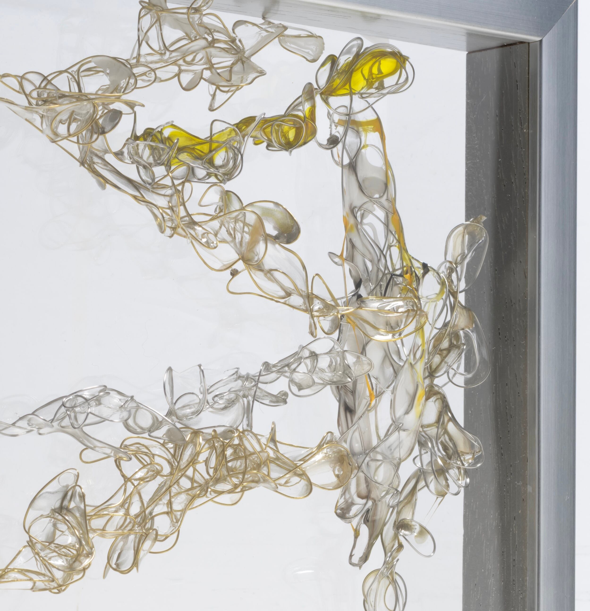 人の眼は見えるものにとらわれてしまいます。ですが何も存在していないと思い込んでいる透明な背景にこそ、何か大切な現象がうごめいている。顕微鏡から覗いた心の細胞をイメージした作品。