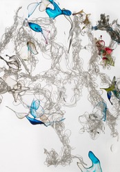 人の眼は見えるものにとらわれてしまいます。ですが何も存在していないと思い込んでいる透明な背景にこそ、何か大切な現象がうごめいている。顕微鏡から覗いた心の細胞をイメージした作品。