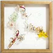 鮮やかで透明な樹脂とワイヤーを組み合わせた独自のアート作品。