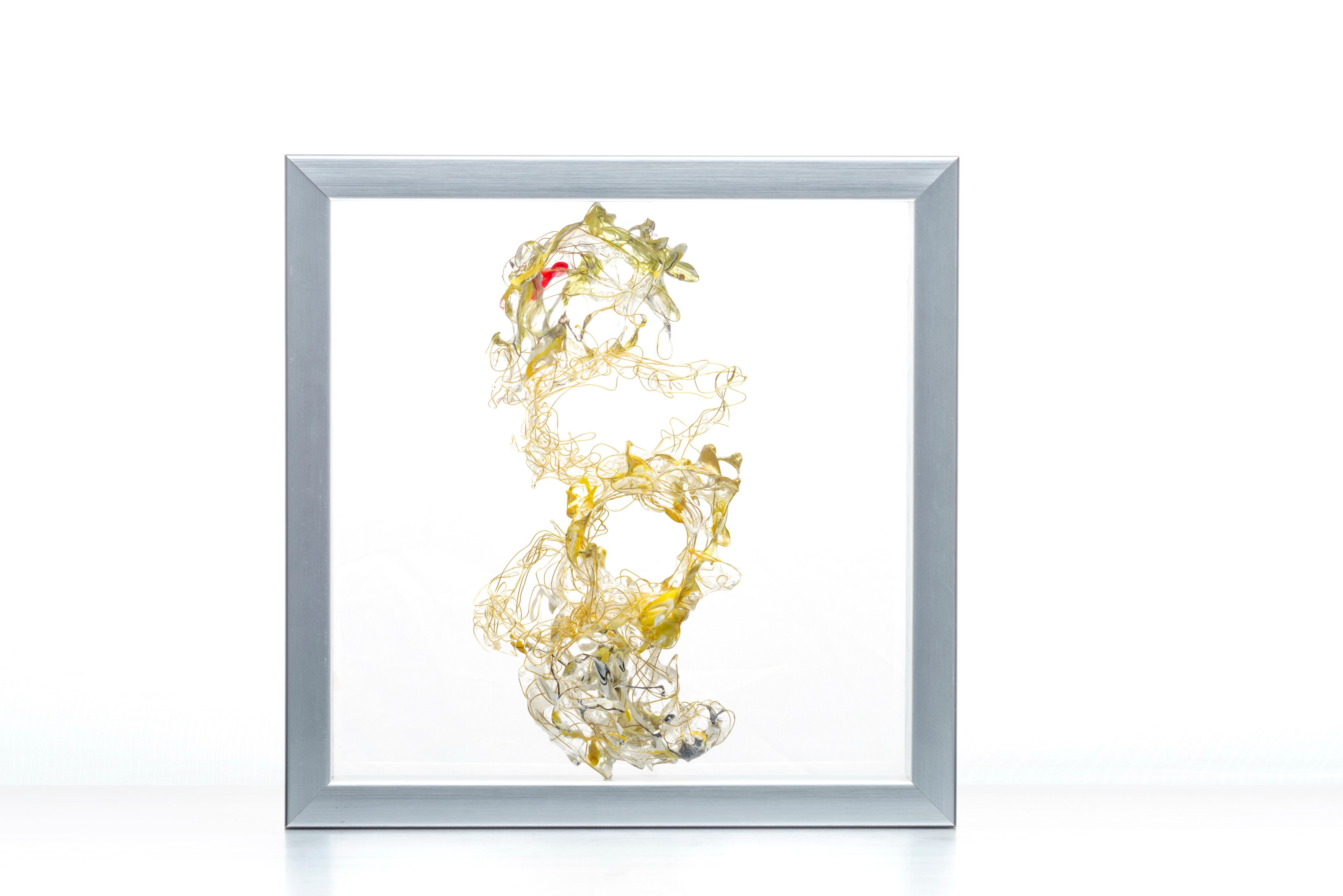 鮮やかで透明な樹脂とワイヤーを組み合わせた独自のアート作品。