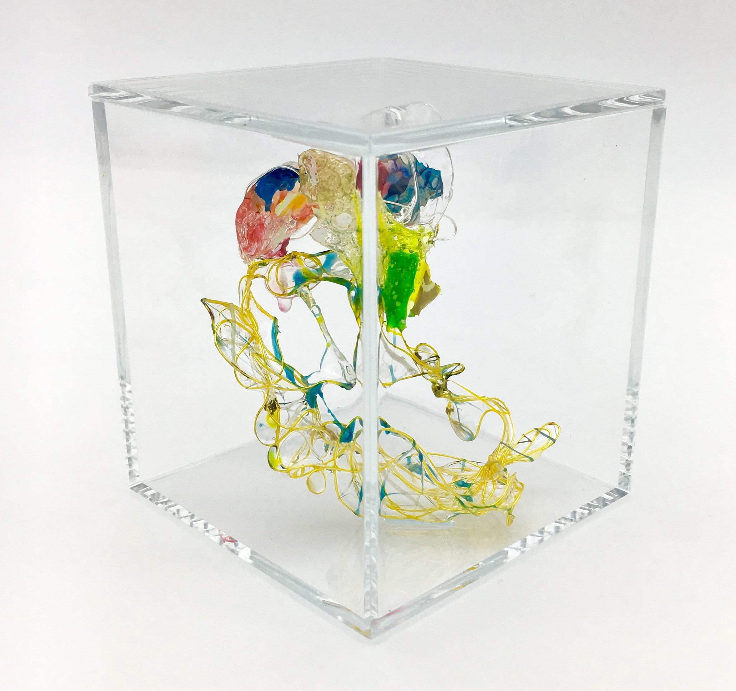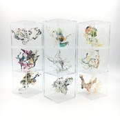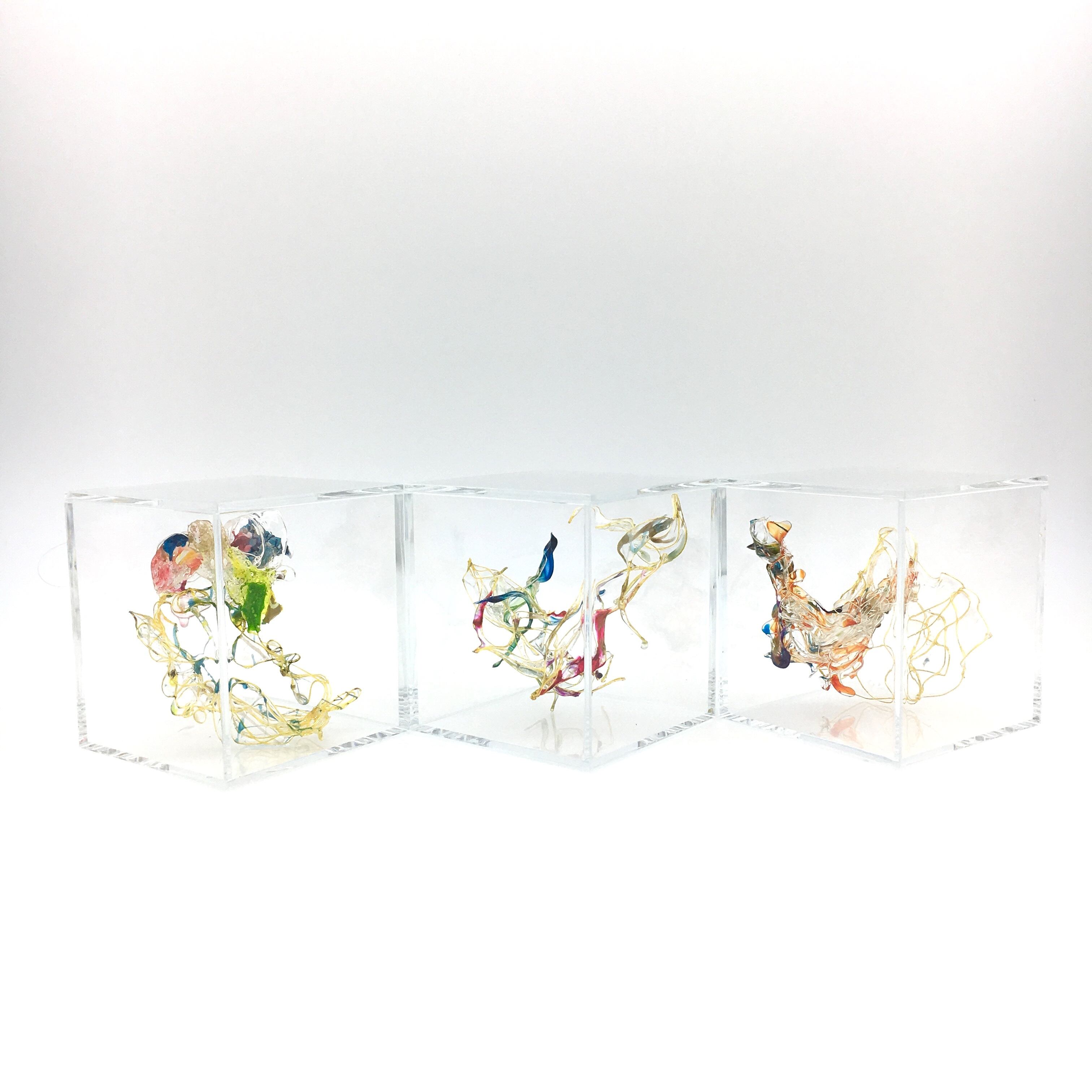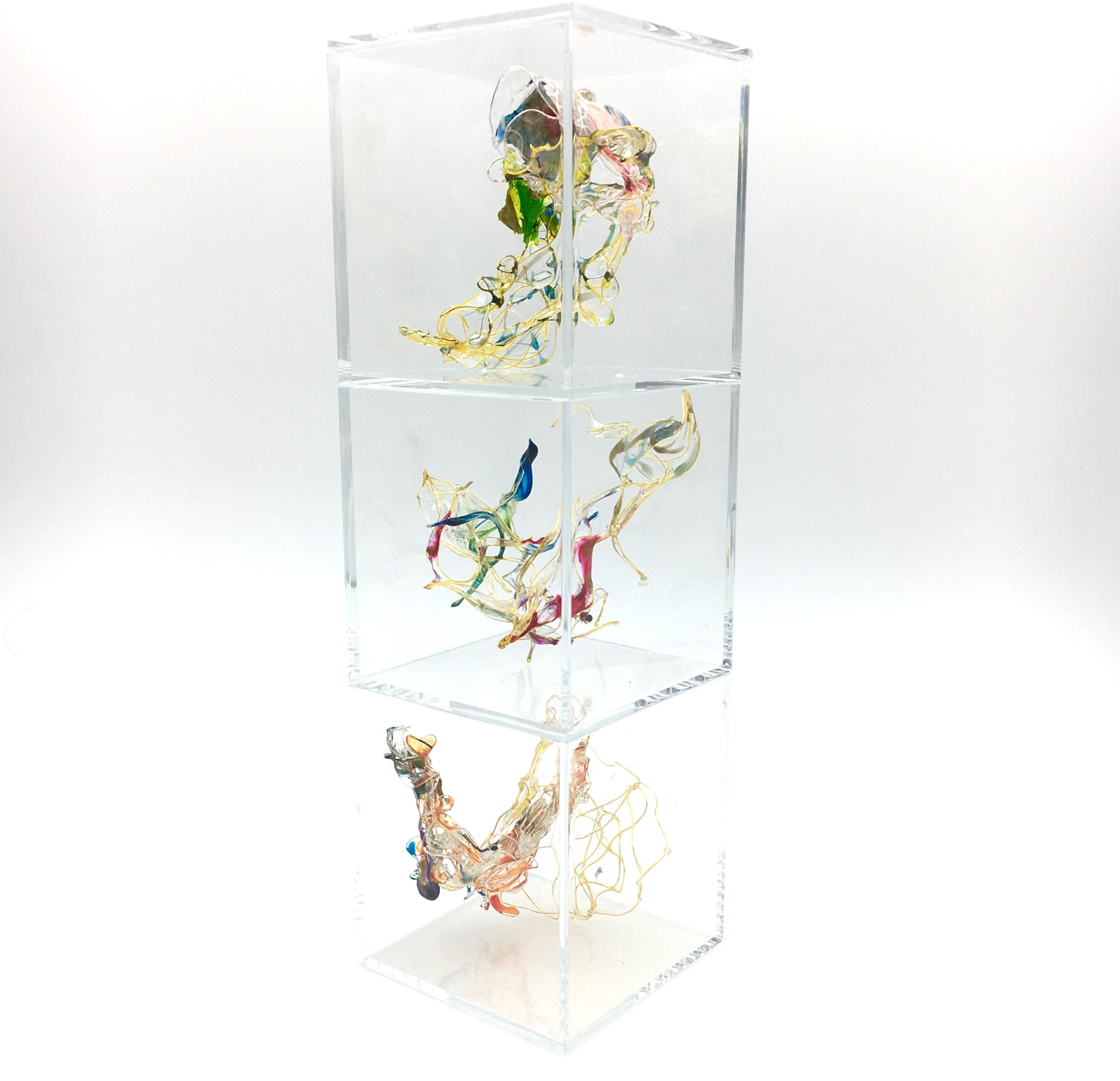 人の眼は見えるものにとらわれてしまいます。ですが何も存在していないと思い込んでいる透明な背景にこそ、何か大切な現象がうごめいている。標本になった心の細胞をイメージした作品。